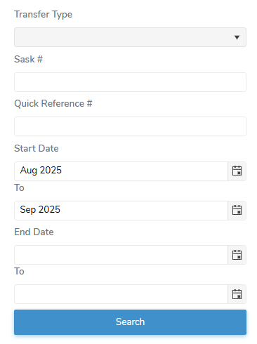 << Click to Display Table of Contents >> Navigation: Administrator Dashboard > Quota Information > Quota Transfers > Searching quota transfers |