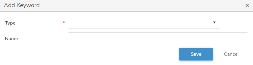 •Type*: Type the first character or click the arrow to display a list, then use the scroll bar to move up or down to find and select the desired type of keyword.