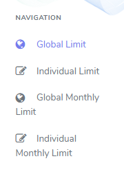 To navigate or view the different limits from the Limit Maintenance page, select the limit you want to view from the Navigation bar on the left side of the page.