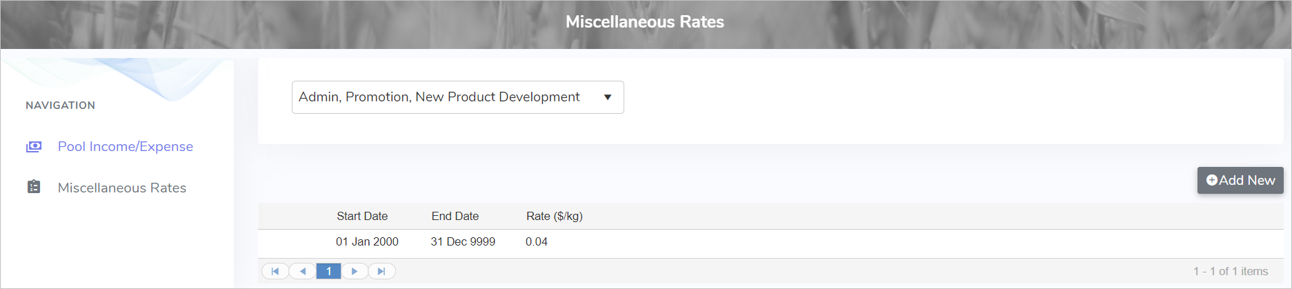 << Click to Display Table of Contents >> Navigation: Administrator Dashboard > Payments Information > Miscellaneous Rates > Pool Income/Expense |