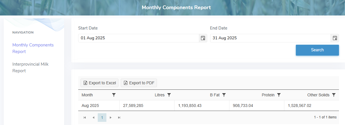 The Monthly Components Reports page provides: