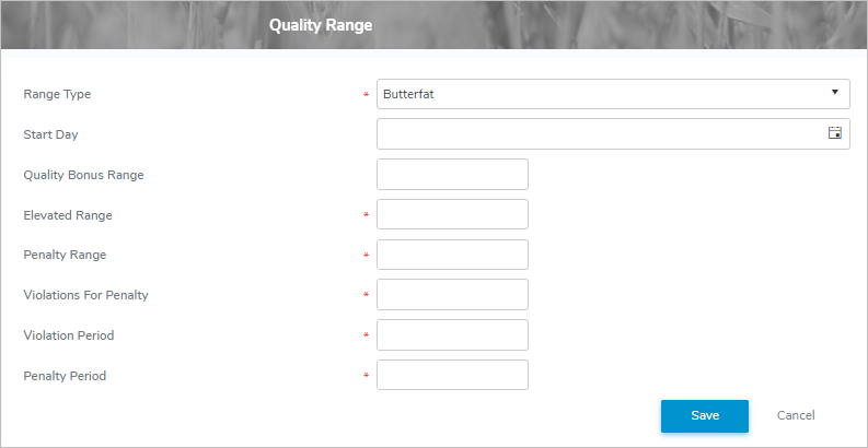 2)Edit or update the details of the quality range as necessary (see Adding a new quality range for more information.)