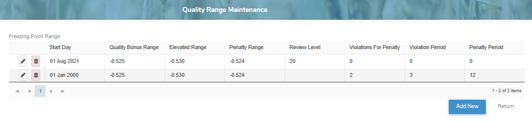 << Click to Display Table of Contents >> Navigation: Administrator Dashboard > Quality Information > Quality Range Maintenance > Quality Ranges > Managing quality ranges |