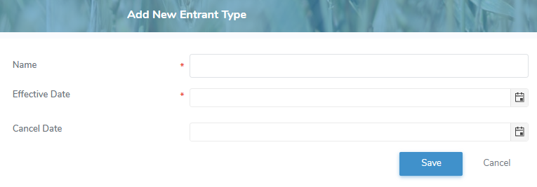 •Name*: Type a brief name for the new entrant type (e.g., 2024 New Entrant.)