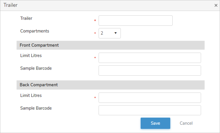 •Compartments*: Automatically populates with the number of compartment for the trailer.
