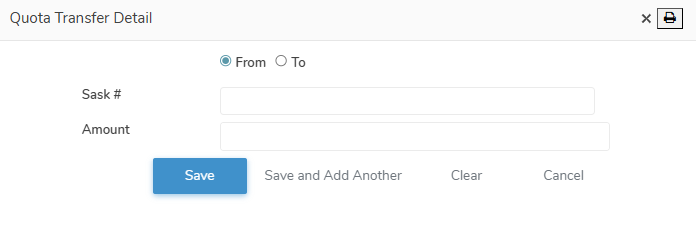 Click Cancel to return to the Quota Transfer page without saving the details.
