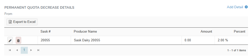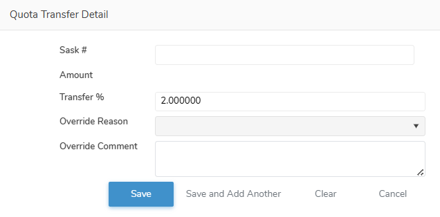 2)Update the details of the permanent quota increase/decrease transfer as needed (see Adding a new permanent quota increase/decrease transfer detail for more information.)