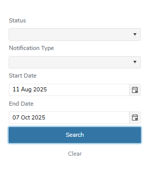 •Notification Type: Type first letter of the notification type or click the arrow to display the list, and then use the scroll bar to move up or down the list to find and select the desired type.