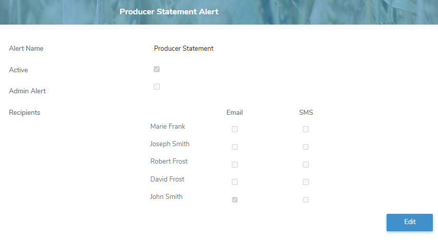 Note: Recipients must be a contact designated by the producer to receive this alert (See Adding new contact for more information.)