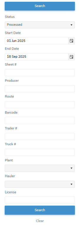 •Hauler: Type first letter of the name of the transporter company or click the arrow to display list of haulers, and then select the hauler.