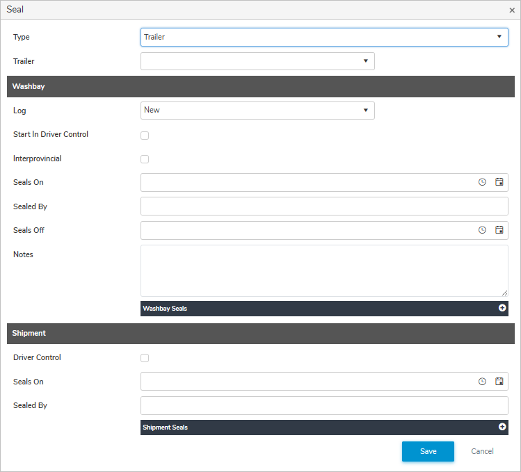 •Type: Click arrow to select the unit either Truck or Trailer that you want to add a seal.