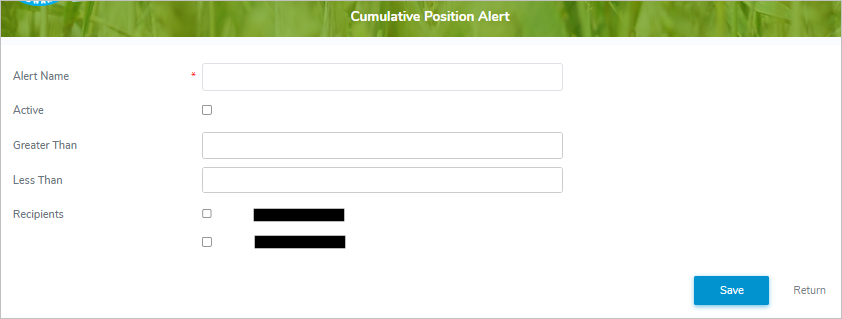 Click Return to return to the Cumulative Position Alerts page without saving changes.