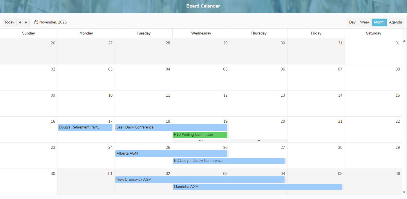 Note: Board documents and events are only accessible to members of the SaskMilk Board of Directors.